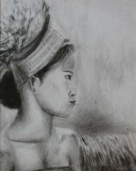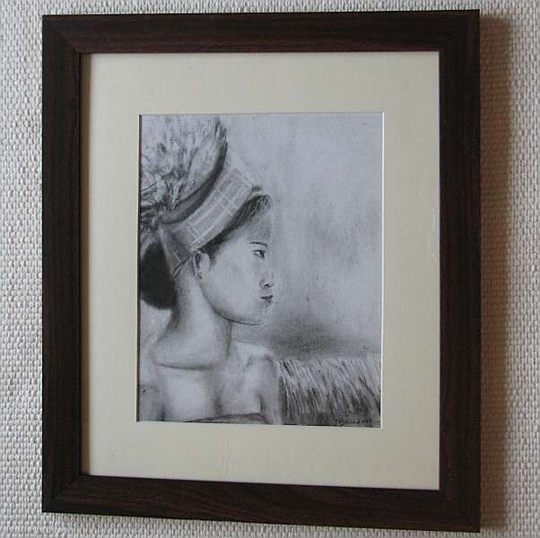 現地のアートマーケットから良質の作品を選び、特製の額縁に入れて小綺麗に仕上げました。「馬子にも衣装」と申しますが(失礼)、なかなかどうしてバリ島の風俗、文化、風景が散りばめられた、味わい深い作品が多いと自賛しております。モノクロ写真のような時代を感じさせてくれる若い女性のデッサン画。