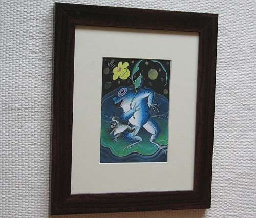 この作品は落ち着いた色合いの木製額縁(紙マット+ガラス付)に入れてお届けします。