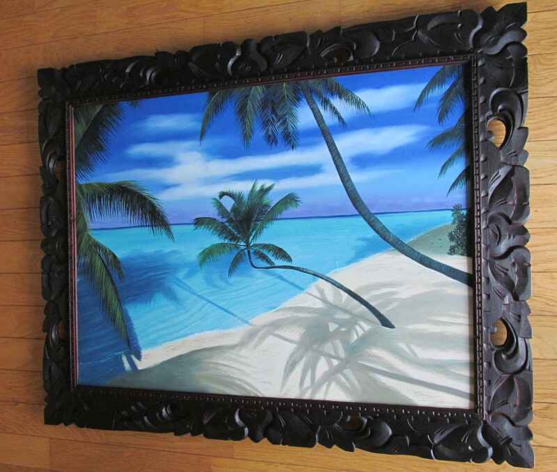 作品番号:1A038 「椰子の砂浜」 by Imam 商品の仕様 キャンバスに描かれた油彩画です 無垢の木彫額縁に入っています 額縁のサイズは約79cmx99cm(縦X横) 額の裏側に吊り下げ用の紐が付いています 重量は約 3KGです 送料はこちらをご参照ください→ 送料 宅急便160サイズを適用 (国内在庫商品です) 額縁に付いてはこちらをご参照ください→ バリ島のフレーム ご注文は【ご注文書】のフォームにご記入願います