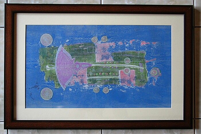 この作品は軽量で丈夫なグラスファイバー額縁(紙マット+ガラス付)に入れてお届けします。フレーム(額縁)やアクリルボードに付いての説明はこちらを参照ください。