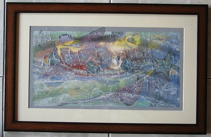この作品は軽量で丈夫なグラスファイバー額縁(紙マット+ガラス付)に入れてお届けします。フレーム(額縁)やアクリルボードに付いての説明はこちらを参照ください。