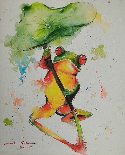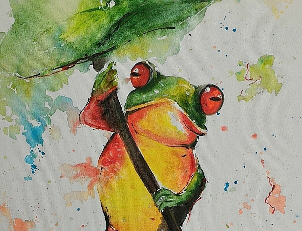 | SUBAWA作品(アクリル画): カエルの雨傘 |