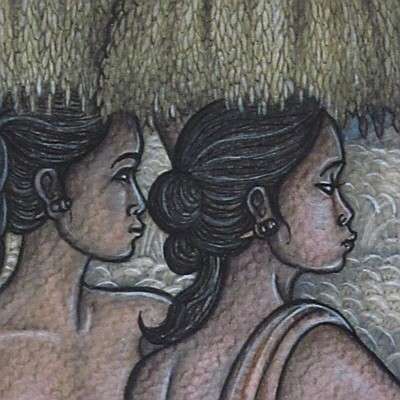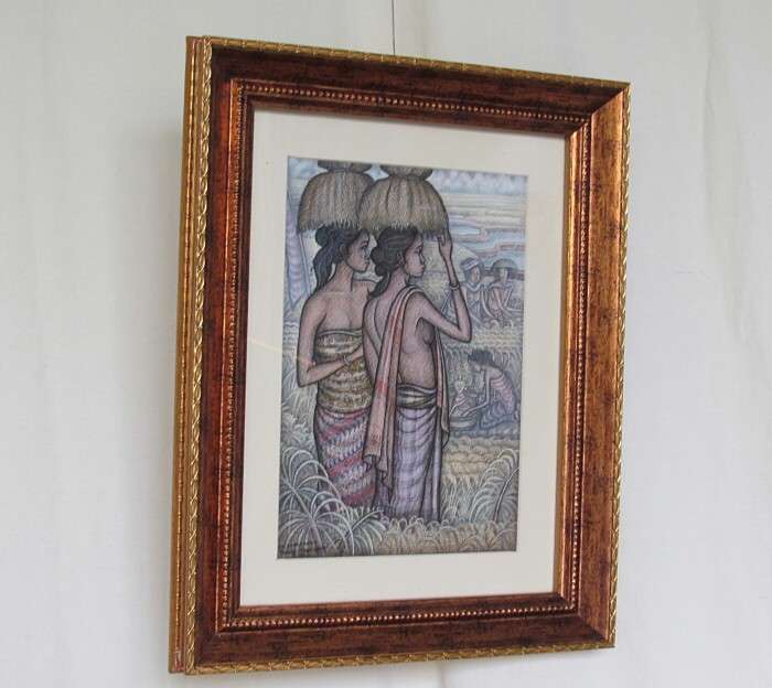 2008年のバリ島アートフェスティバルに出展された作品で、柔らかな色彩のグラデーションと巧みな描写で、細かな衣装の模様から、遠近感まで表現しています。中央右の女性は稲穂で豊穣の女神デウィ・スリを作っているようですね。小品ながら当に珠玉の逸品といえる作品です!