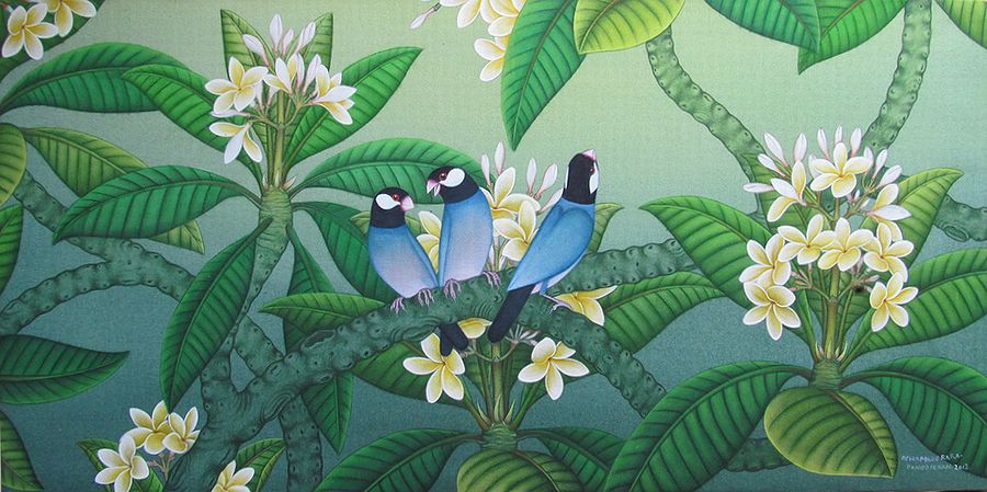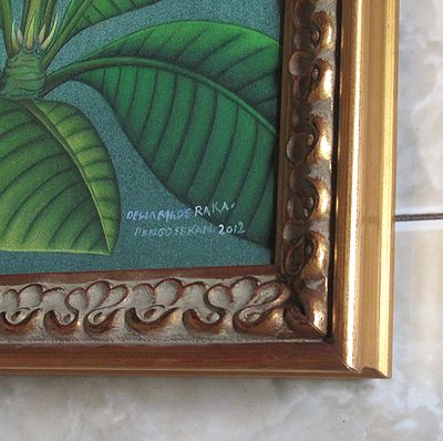 1959年ウブドに生まれる。1983年美術学校卒業。1983年 RATNA WARTA (プリ・ルキサン)美術館でのグループに出展。プンゴセカンスタイルの花鳥画を継承する熟練の絵師で、LABA氏と同じファミリーに属する。 |