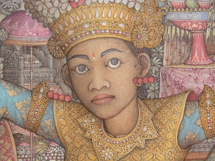 1942年ウブド・プリアタン村に生まれる。1961年から3年間ジャワ島バンドン市(Bandung Institute of Technology)で芸術科の学生として学ぶ。在学中は主に西洋の近代絵画技法を学ぶ。1969年バリ島に戻ると、自身のルーツとしてのウブド伝統絵画に新しい魅力を感じるようになります。村人たちの生活や宗教行事など身の回りの出来事を題材に、細部に拘った緻密な作品を次々に制作。その後は後輩の育成に力を注ぎ、多くの画家のたまごたちを指導して伝統絵画の継承に貢献しています。氏の写真と略歴は伝統バリ絵画名鑑【BALI BRAVO】に掲載されています。