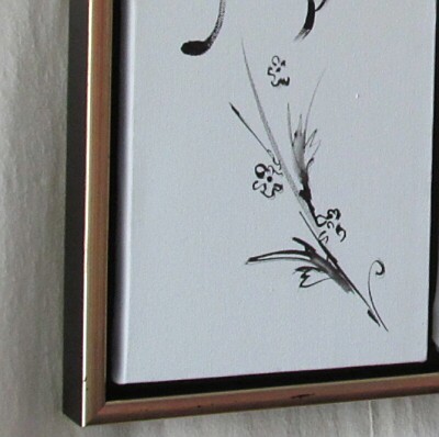 この作品は全面が金色で側面が黒色に塗装された、奥行きのある木製塗額縁に入っています。絵と額縁の間に隙間を入れることにより、中の絵に広がりが出る効果があり、人物の動きも伸びやかに感じられるのではないでしょうか。前面の塗装部分に禿のような部分がありますが、それがこの額縁のオリジナルですので、お気になさらないでください。