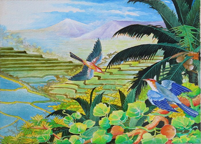 1972年バリ島に生まれる。1995年バトウアンの美術学校卒業。2001年ウブドのRatna Warta美術館でのグループ展に参加。人物と花鳥画に定評あるがある。飛び抜けた才能と技量でジャンルに囚われず幅広いモチーフに挑戦し続けている。 |