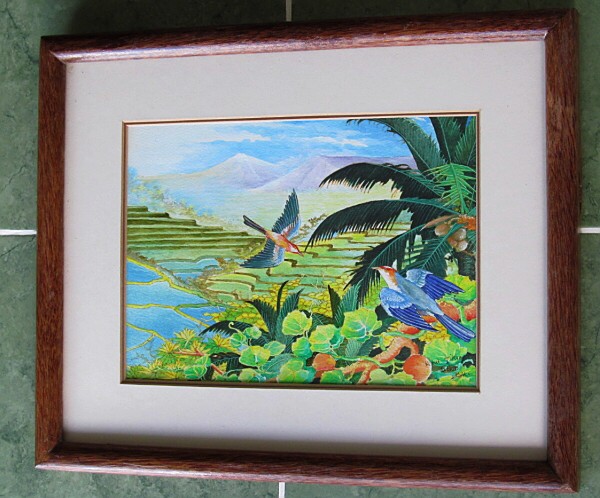 この作品はバリ島の香り漂う無垢の椰子額縁(紙マット+ガラス入)に入れてお届けします。