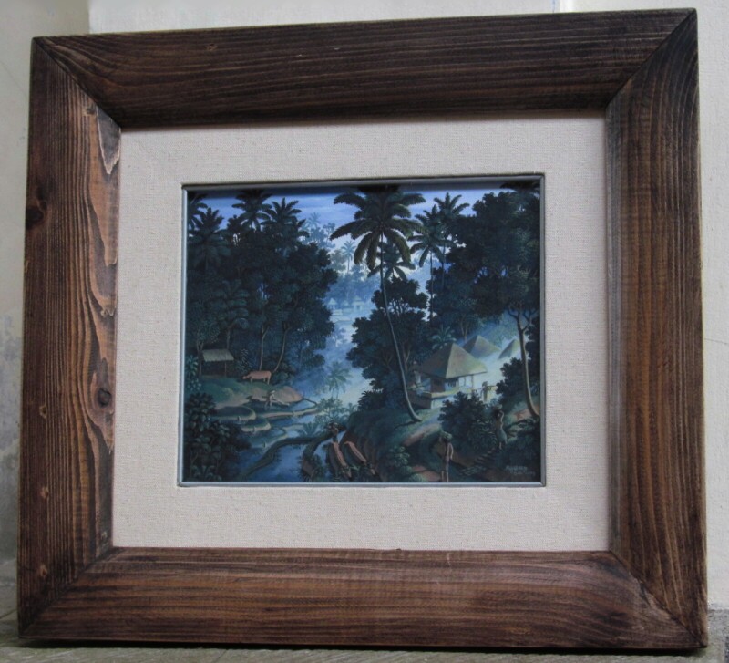 1.重厚なニャント材の木製額縁。(麻マット+面銀付)