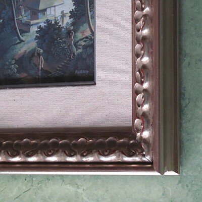 2.模様の入った木製銀色塗額縁。(麻マット+面銀付)