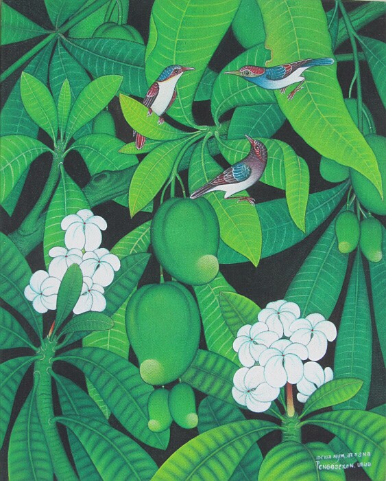 1973年バリ島ウブド地区プンゴセカン村に生まれる。幼いころから父親の画家LABA氏に絵の手ほどきを受ける。1990年Batu Bulanの美術高校を卒業。LABA氏の気品のある優雅な画風の花鳥画の継承者として期待されている画家です。 |