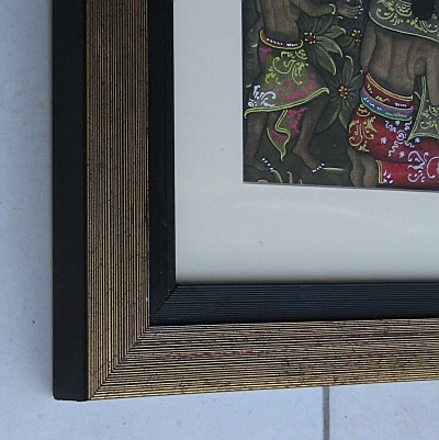 こげ茶と黒の2色に塗装された木製塗額縁(紙マット入)に入れてお届けします。
