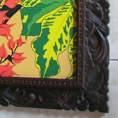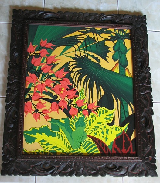商品の仕様 商品名 アクリル画 原産地 インドネシア 状態 新品 額縁 木彫額縁 吊り下げ金具 額の裏面に吊り下用紐付き
