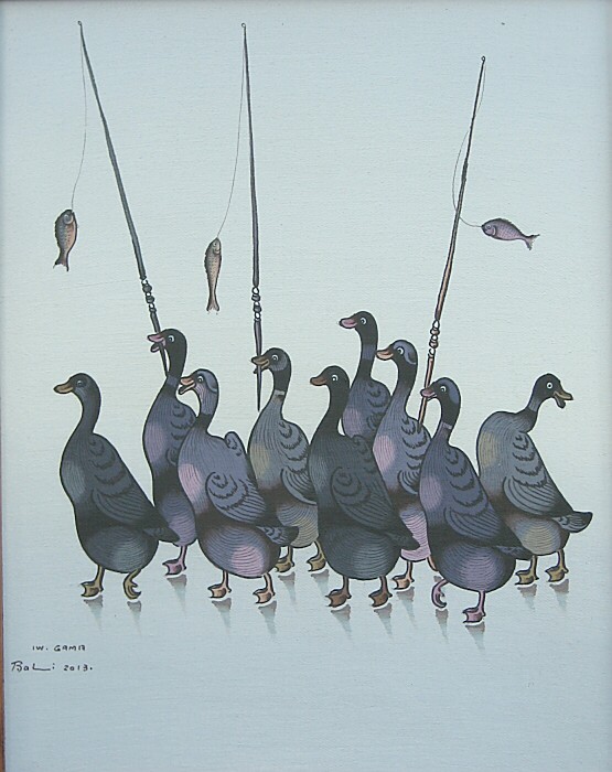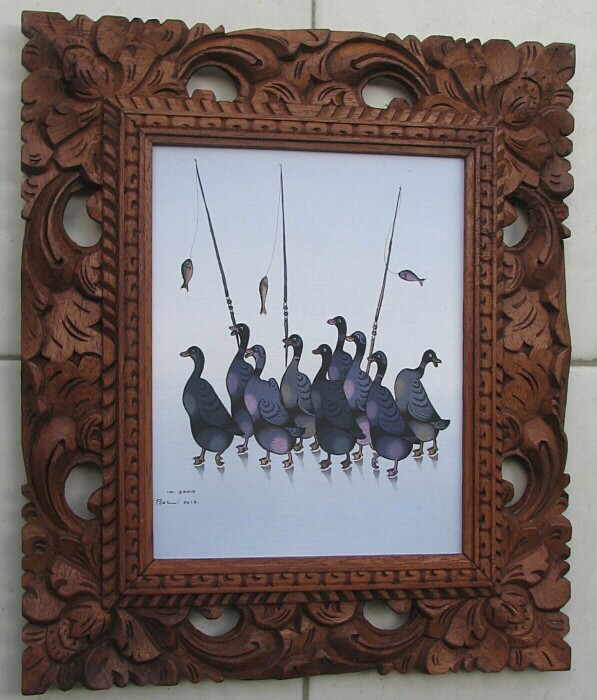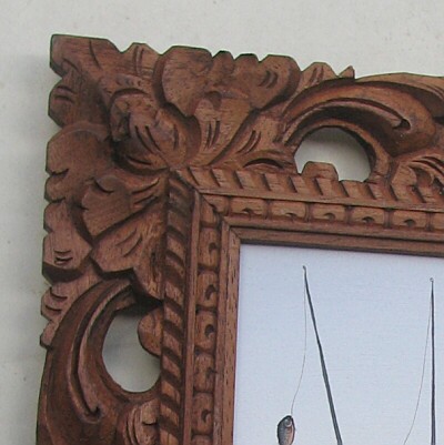 この作品はバリ島の香り漂う彫刻の入った木製額縁に入れてお届けします。