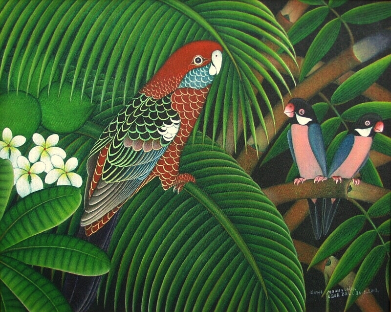 1948年バリ島ウブド−プンゴセカン村に生まれる。大胆な色使いで装飾性の高い野鳥画は80年代バリ絵画の流行となり、プリ・ルキサン美術館を創設したオランダ人画家ルドルフ・ボネの推薦で同美術館の絵画展に出展。