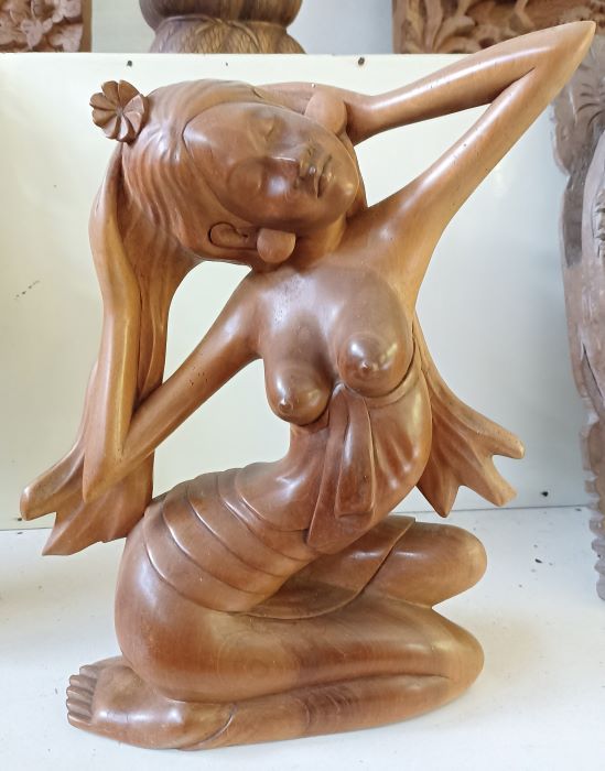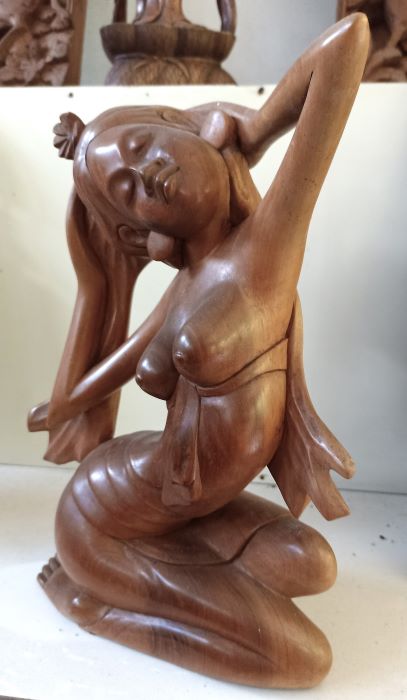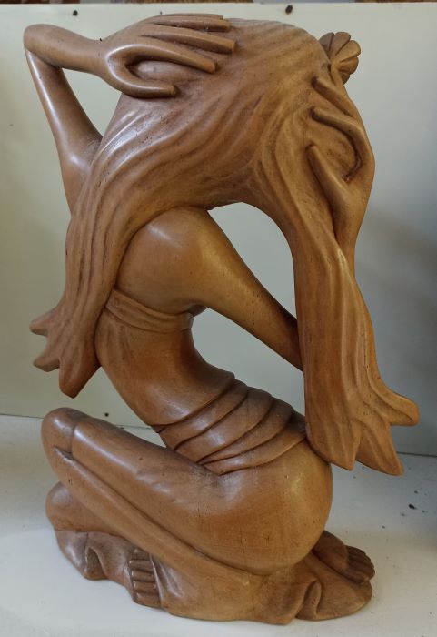 重厚な無垢のスアール材に彫られた可憐なバリ島の乙女像です。