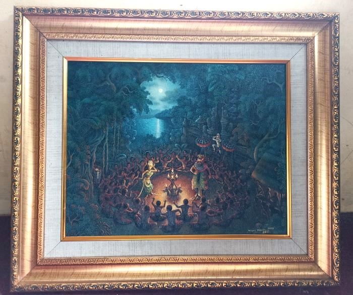 この作品はバリ島の香りいっぱいの重厚な木彫額縁に入れてお届けいたします。