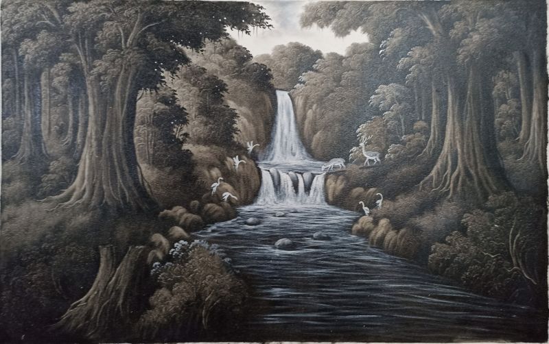 幽玄な熱帯の森の奥深く、水音が聞こえてきそうな清冽な滝の姿は、観る人の心を洗い流し癒してくれることでしょう。