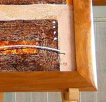 この作品は高級家具材として人気の無垢のチーク材額縁に入れてお届けします。フレーム(額縁)やアクリルボードに付いての説明はこちらを参照ください。