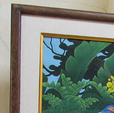 この作品は、麻マット付いた無垢の椰子材額縁に入れてお届けします。