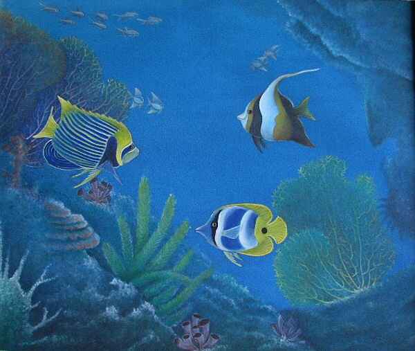 1988年バリ島Ubud生まれ。GIANYARの高校の美術学部をトップ成績で卒業。アクアリウム画が好きで高校の美術の教師から絵の注文を受けるほどの腕前(笑)。画家のJENDRA氏の長男。国内の現代美術絵画展で入賞を重ね、インドネシアの現代美術作家として注目を浴びている逸材です。 |
