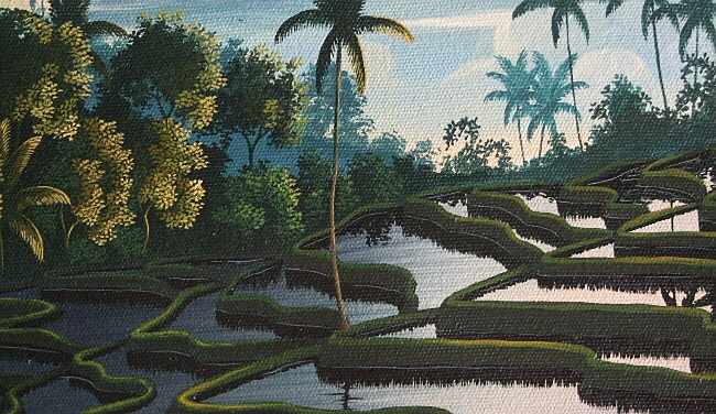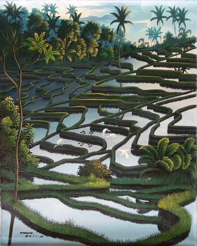 山裾に広がる棚田には満々と水が張られていて、そこに舞い降りる白鷺の姿は当に一幅の絵になります。(笑) 幻想的な熱帯林の作品を得意とするONPONK氏は技量、気力ともに絶頂期にあり、遠くジャカルタの愛好家から製作依頼が殺到するのもうなずけます。