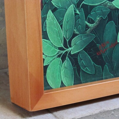 この作品はインドネシア産の無垢の松材製額縁(ボックスタイプ)に入れてお届けします。