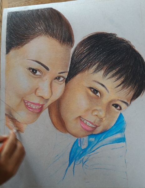 写真を送っていただき、それをもとに色鉛筆で肖像画を制作いたします。
