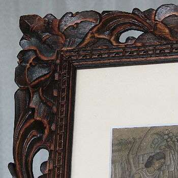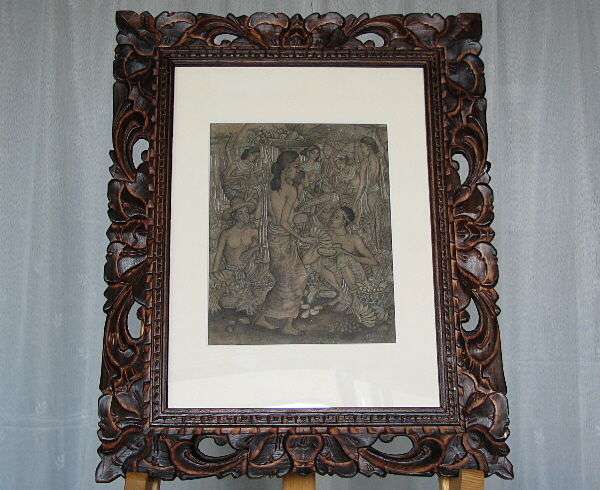 この作品は無垢の手彫(紙マット入)木製額縁に入れてお届けします。フレーム(額縁)やアクリルボードに付いての説明はこちらを参照ください。