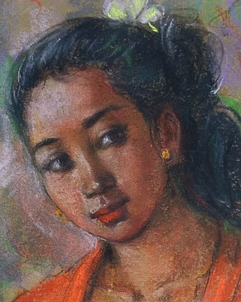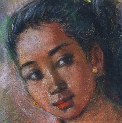 バリ島の可憐な乙女が淡い色彩のパステル画となって届きました!