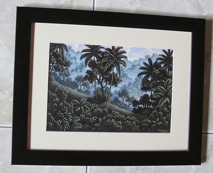 朝霧立ち込めるのどかなバリ島の農村風景画は写実的で、実際の姿のように見えながらも夢の中に漂っているような不思議な世界を創りだし、光と闇を操る新たな絵画スタイルへと昇華されています。