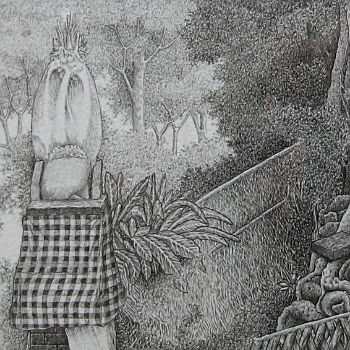 モノクローム写真のようなペンで描かれた細密画で、昔どこかで見た記憶があるような懐かしい世界が描かれています。