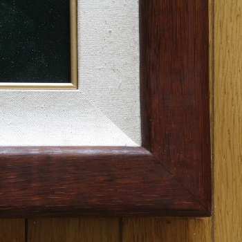 この作品は重厚な無垢の椰子額縁(麻マット付)に入れてお届けします。