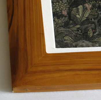 高級家具材に使われる丈夫で美しい無垢のチーク材製の額縁に入れてお届けします。