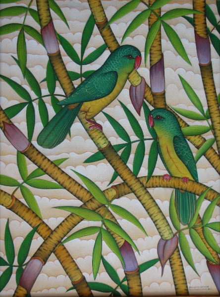 1973年バリ島ウブド地区プンゴセカン村に生まれる。幼いころから父親の画家LABA氏に絵の手ほどきを受ける。1990年Batu Bulanの美術高校を卒業。LABA氏の気品のある優雅な画風の花鳥画の継承者として期待されている画家です。 |