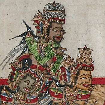 ヒンドウ経の聖典ラーマヤナ物語の一場面。バリ絵画は、豊かな感性と高度なテクニックで緻密に描かれているのが特徴で、心を癒す「ヒーリング・アート」として地上の楽園バリ島を訪れる世界中の旅行者に愛されています。