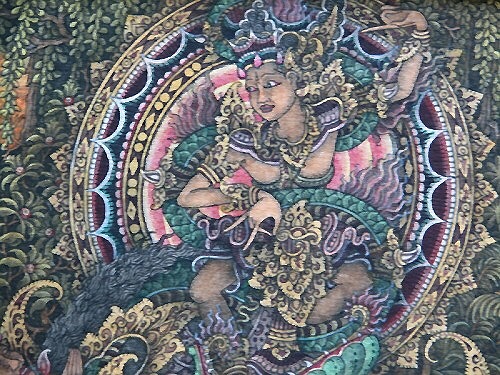 ナーガ(大蛇)と戦う女神ドウルガ(シヴァ神の奥様)を中心にヒンドウ教の神々が戦う神話の世界を描いた作品。