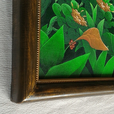 この作品は無垢のニャント材額縁(面金付)に入れてお届けします。