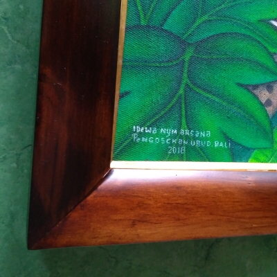 バリ絵画は、豊かな感性と高度なテクニックで画面全体に緻密に描かれているのが特徴で、心を癒す「ヒーリング・アート」として地上の楽園バリ島を訪れる世界中の旅行者に愛されています。 ARSANA氏はプンゴセカン絵画の巨匠LABA氏の息子でプンゴセカンの若き後継者です。その作品は父の画風を継ぎ、静謐で気品に溢れ細部も丁寧に仕上げています。 額縁は写真の3種類の中からお選びいただけます。ご注文書にご希望の額縁名を明記くださるようお願いいたします。