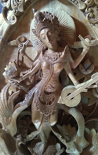 女神サラスワティは学問と芸術の神様として人気があります。バリ島には「女神サラスワティの日」があり、この日は本を読んだり、音楽を奏でたり聴いたりすることが禁止されているとのことで学校での授業はお休みです。年に一度は女神様に休養を与えようとの配慮からでしょうか…。