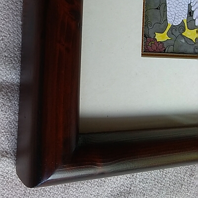 この作品はバリ島の香り溢れる重厚な無垢の木製塗り額縁(紙マット+アクリル板付)に入れてお届けします。 バリ島産の額縁やアクリルボードに付いての説明はこちらを参照ください。 → バリ島のフレームに付いて