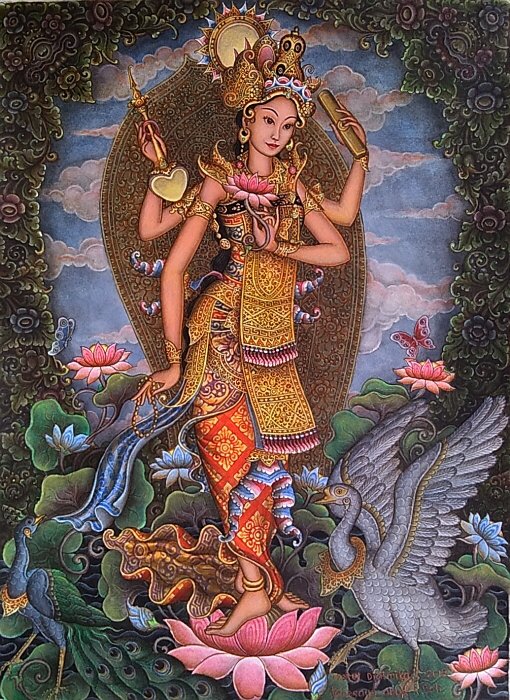 女神サラスワティは学問と芸術の守護神として人気があります。祝日かどうか分かりませんが、バリ島には「女神サラスワティの日」があり、この日は本を読んだり、音楽を奏でたり聴いたりすることが禁止されているとのこと。年に一度は女神様に休養を与えようとの配慮からでしょうか…。