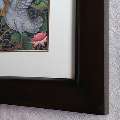 この作品はバリ島の香り溢れる重厚な無垢の木製塗り額縁(紙マット+アクリル板付)に入れてお届けします。 バリ島産の額縁やアクリルボードに付いての説明はこちらを参照ください。 → バリ島のフレームに付いて
