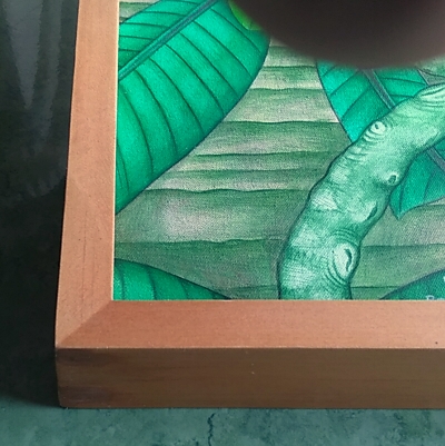 この作品はボックスタイプの木製額縁に入れてお届けいたします。