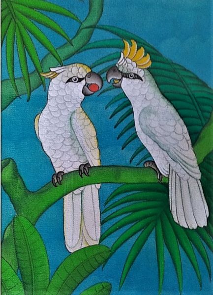 静寂と気品に溢れたLABA氏の作品には、熱帯の森や村に生息する万物の聖霊の存在を強く感じます。気になる絵が見つかると、初めに全体の印象を確認し、その後背景を調べ、合格となったら中央のモチーフを凝視し、最後に人物(動物)の場合は瞳に集まると云われます。