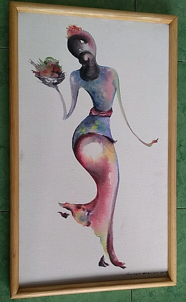 真っ白なキャンバス/紙に、流れるような筆使いで美しい花や女たちが一気にしかも繊細な描写で描きだされていく光景にはとても驚かされました。氏にとってアートとは脳内に浮かび上がった(創造した)イメージをキャンバスに映し出すことであり、それが一つの作品となって完成したものがアート作品とのこと。記憶の中から引っ張り出してきて描かれたものは、自分にとってはコピーのようなものと言っておられました。泉のように湧き出てくるインスピレーションを、産みの苦しみの中でイメージとして創造する姿は時に苦悩に満ちていました。鋭い眼光のKetut氏はその後さっさと釣りに出かけました。何故かバリ島では魚釣りが好きな画家さんと出会うことが多いようです。