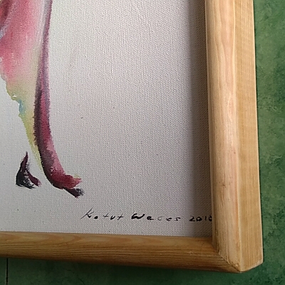 この作品はシンプルな木製塗り額縁に入れてお届けします。