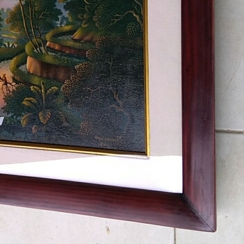 この作品は麻マット+面金付の木製塗り額縁に入れてお届けします。