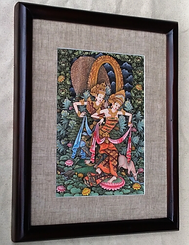 この作品はバリ島の香り溢れる無垢の木製塗り額縁(紙マット+アクリル板付)に入れてお届けします。 バリ島産の額縁やアクリルボードに付いての説明はこちらを参照ください。 → バリ島のフレームに付いて