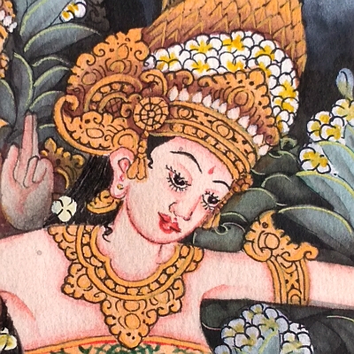 緻密な描写が命の細密画は、伝統バリ絵画の屋台骨といっても過言ではないほどの重要な技術で、ウブド郊外のクリキ村がその本場です。